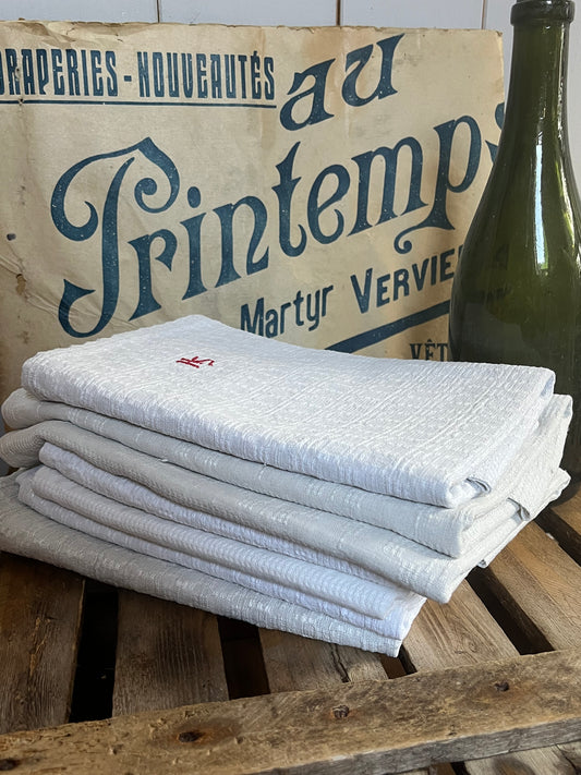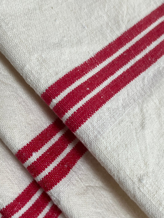 Klassiker: 4,5 Meter Waffelleinen mit roten Seitenstreifen um 1920