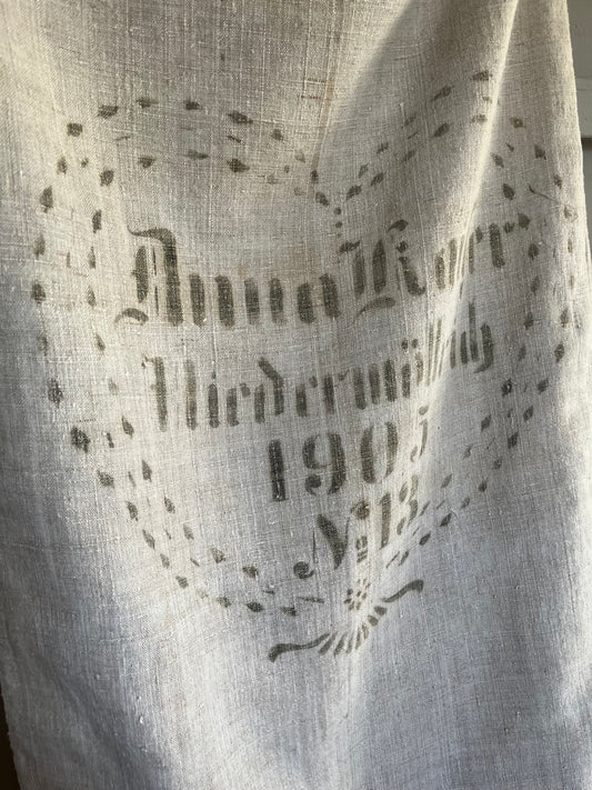1905: extra großer Leinensack mit herzförmigem original Aufdruck 128 x 60