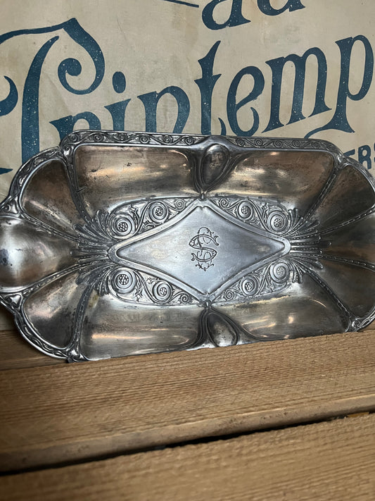 Alte XL Vorlegplatte Servierplatte Streublumen aus Belgien