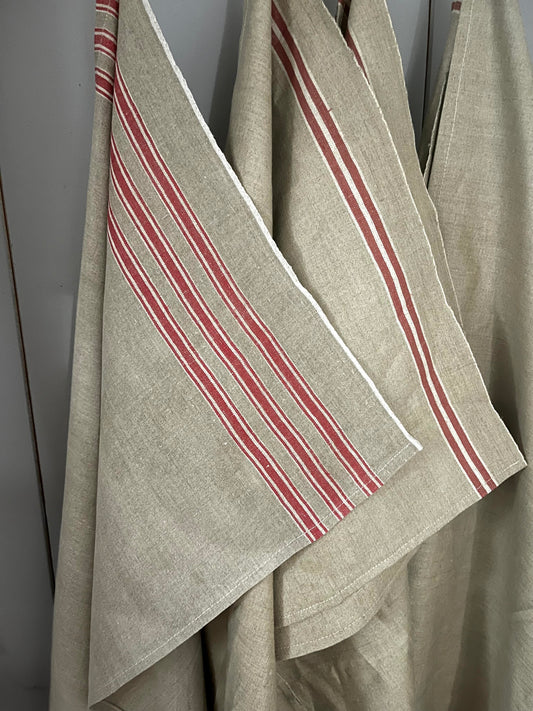 AusverkauftGroßes Leinentuch Küchentuch mit roten Streifen