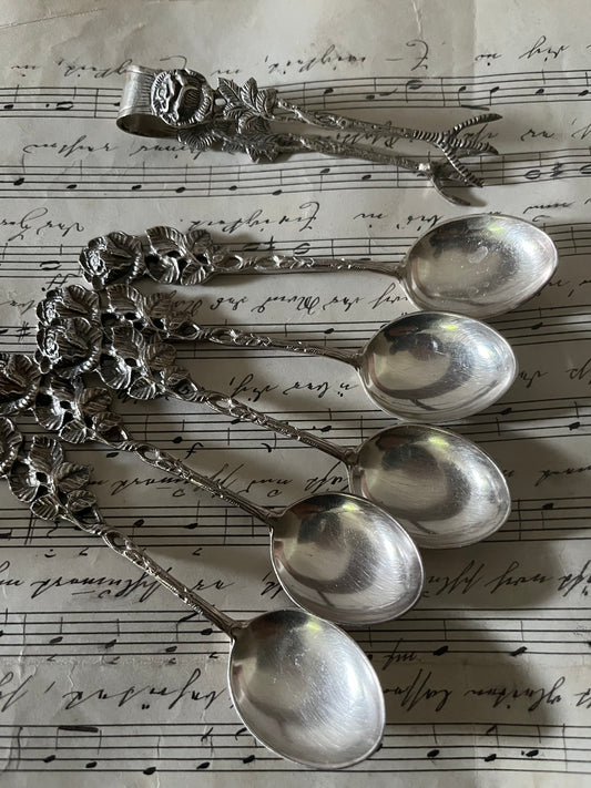 5 Mokkalöffel + 1 Zuckerzange Hildesheimer Rosé