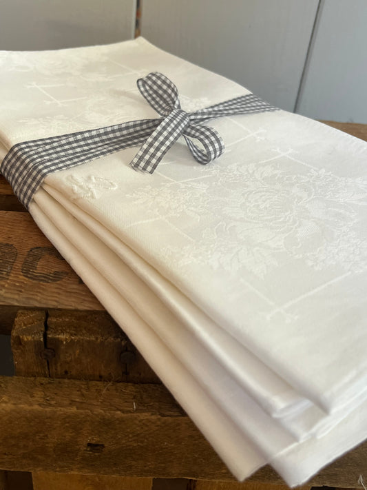 Leinendecke Serviette aus Frankreich mit Prunkdamast und Monogramm