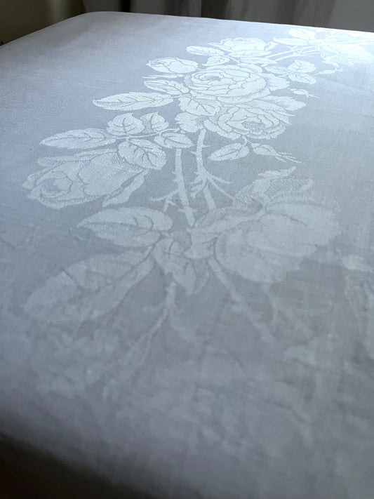 Großes Tuch aus Leinen/ Viskose mit Damastblüten