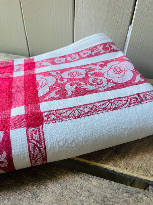 Französische Damastdecke Rot/Weiß 155 x 130