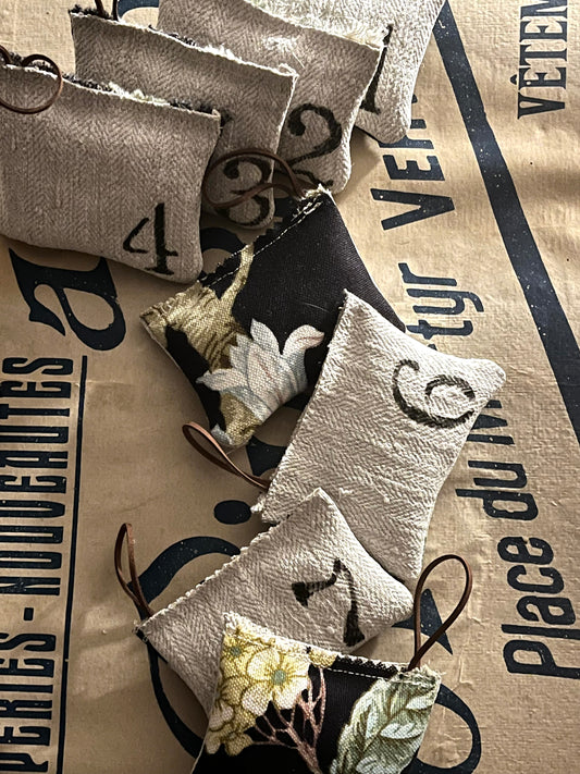 Lavendel-Turm: 6 Duftsäckchen in very vintage Leinen