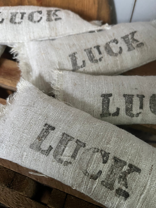 Große Glücks-Lavendelkissen in Leinen mit Aufschrift
