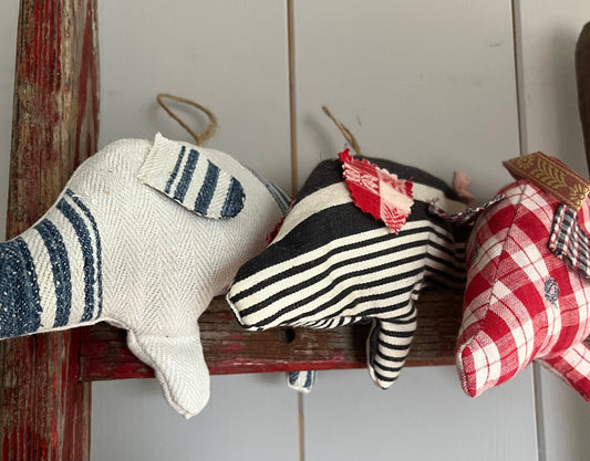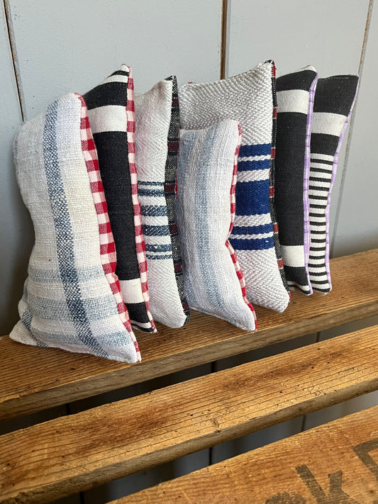 Blau gestreift: 3 große Lavendelkissen aus Vintage Leinen