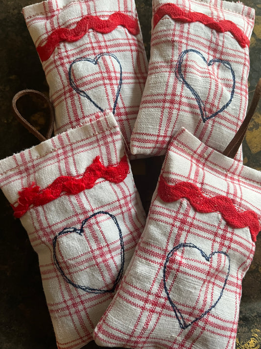 AusverkauftHerzen Rot/Weiß: vier bestickte Duftkissen