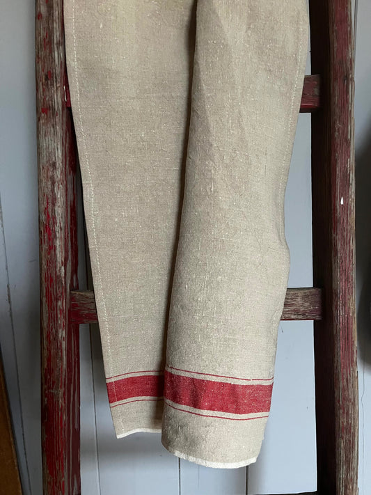 Großes Leinentuch mit breiten rot/weißen Streifen