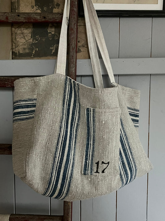 Große Tasche Shopper aus kräftigem Leinen mit blauen Streifen