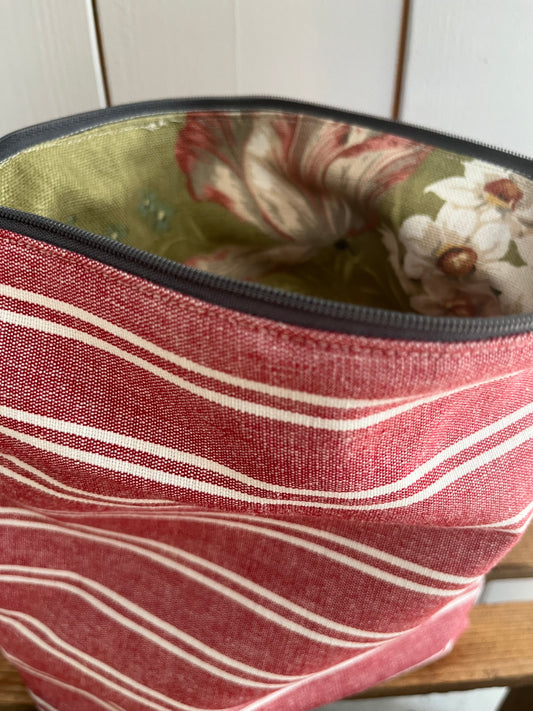 Große Kosmetiktasche aus Leinen Rot weiß gestreift kleiner Shopper