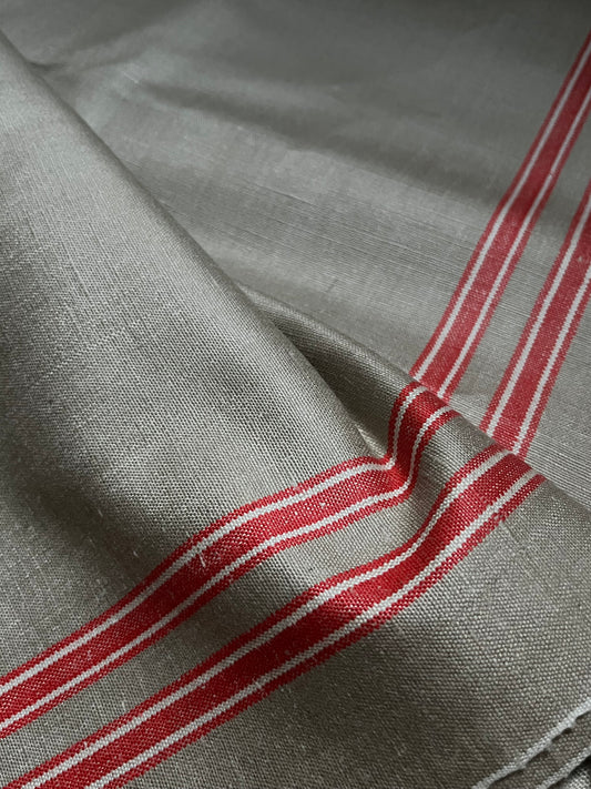Großes unbenutztes Mangeltuch mit roten Streifen 285 x 92