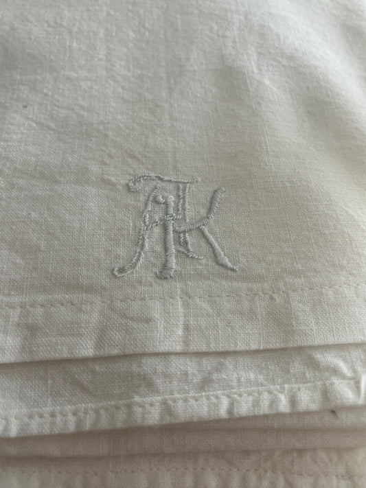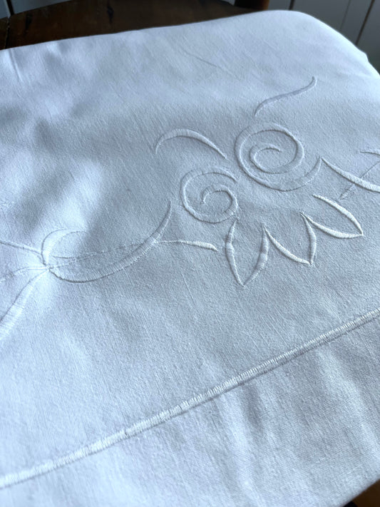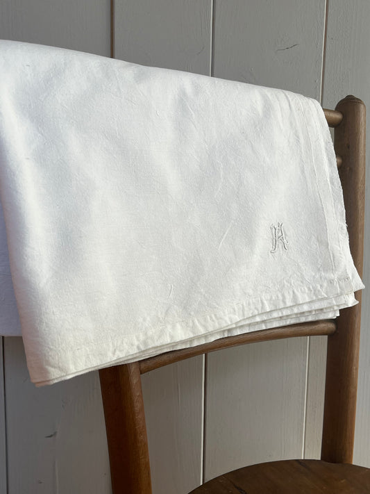 XL Leinen Laken aus Frankreich mit großem Monogramm und Hohlsaum