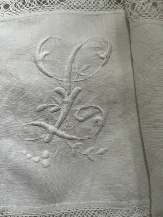 Feines und altes Laken aus Frankreich mit Monogramm RL 260 x 155