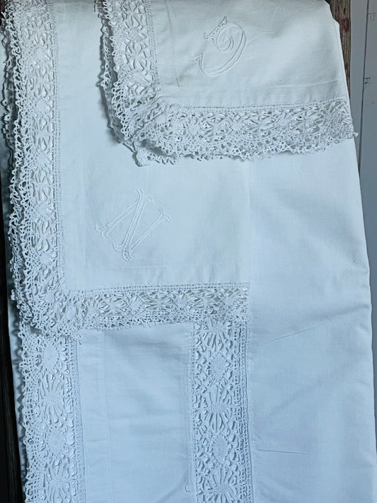 Set: 2 Kissen und 1 Laken mit Filetspitze aus Belgien