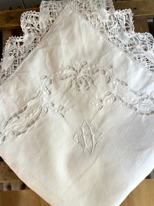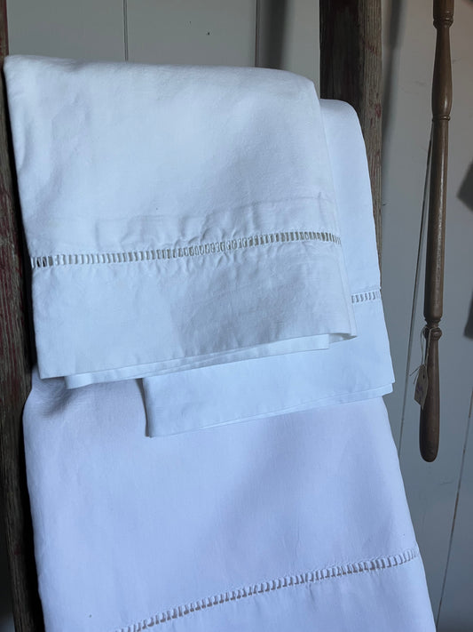 Set: 2 Kissen und 1 Laken mit großer Hohlsaumarbeit aus Belgien