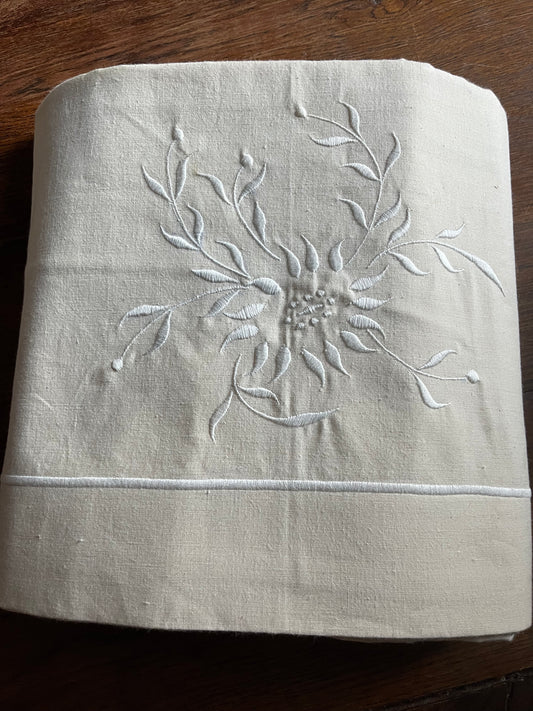 Vintage Laken aus Belgien mit Stickerei