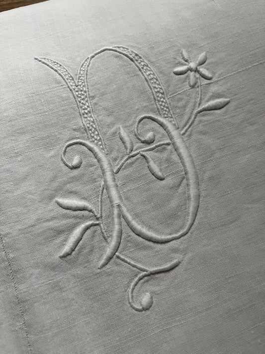 Fantastisches Leinenlaken aus Frankreich mit bildschönem Monogramm