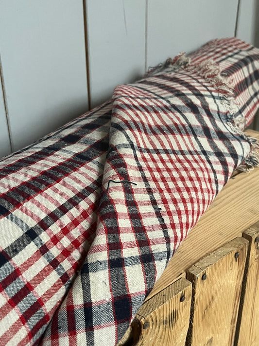 XL Leinen Decke, Überwurf aus schwerem Leinen mit roten Streifen 180 x 155