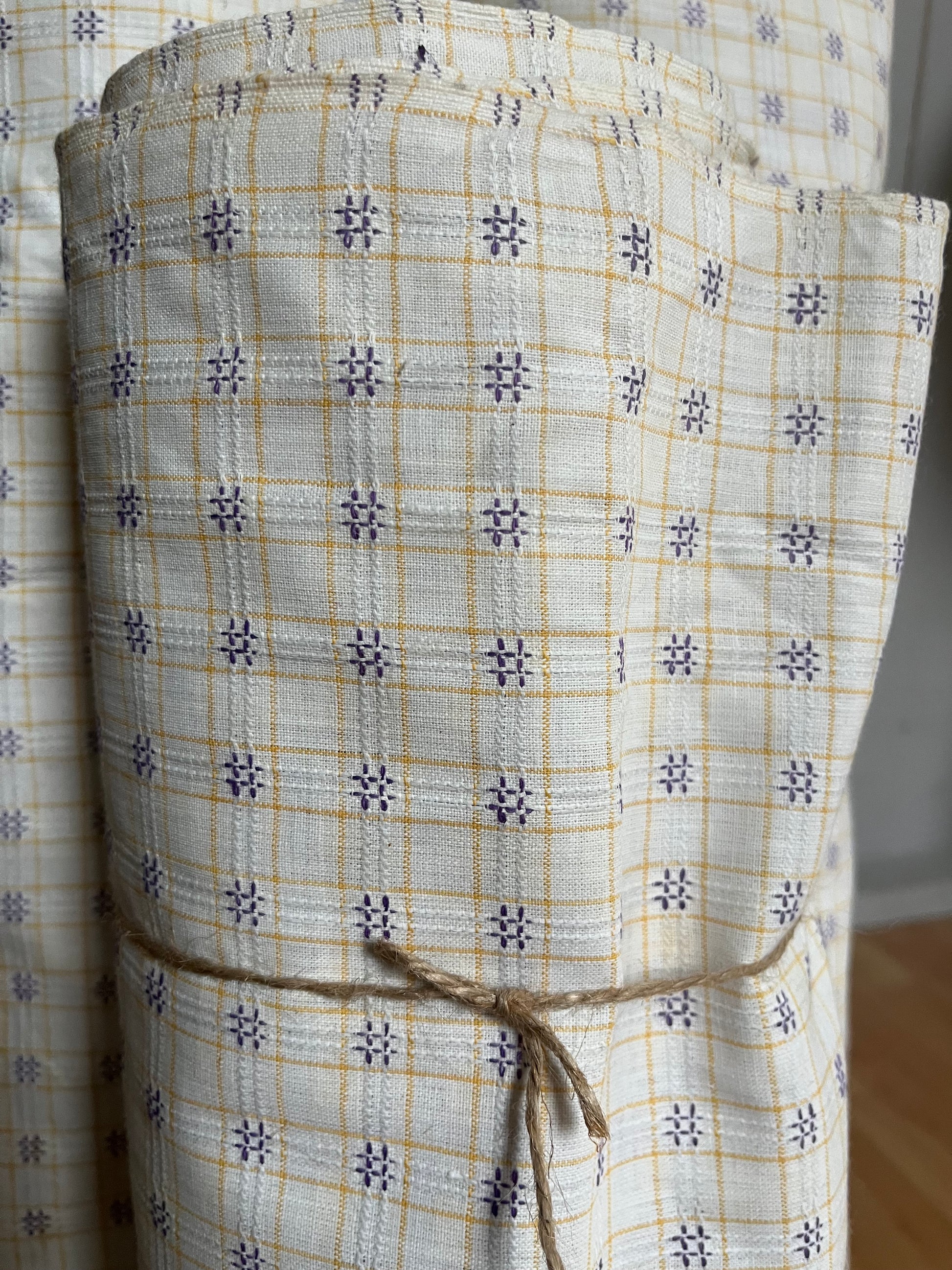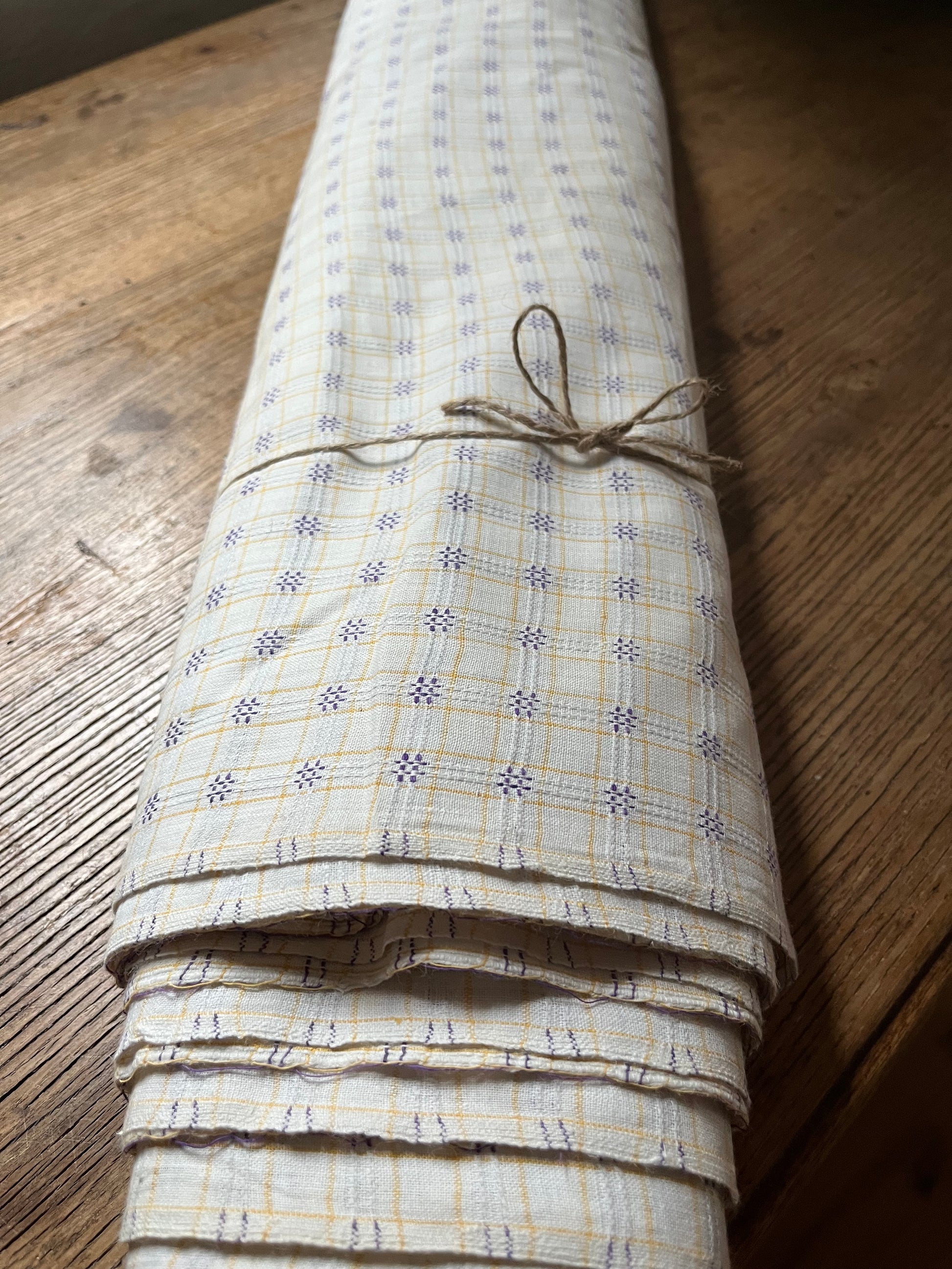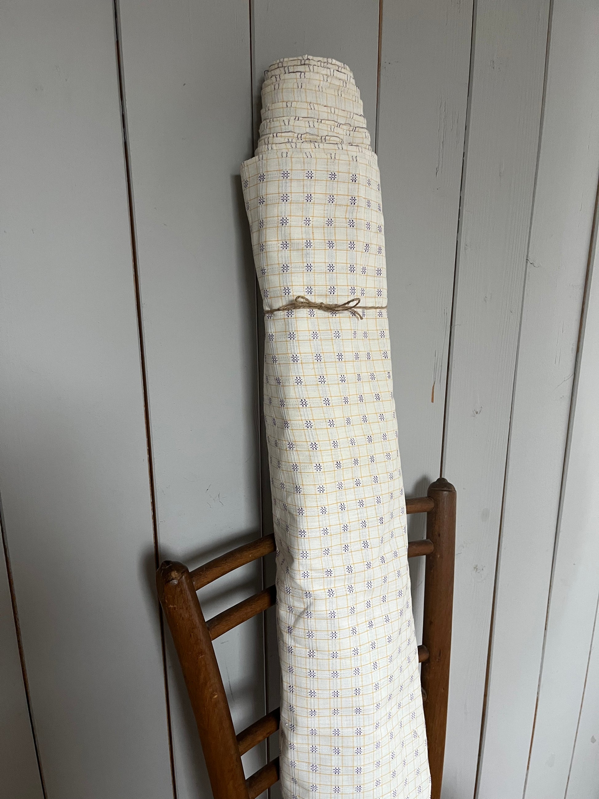 Wunderschöner Stoff aus den 1930er Jahren. Es ist zartes Leinen, Vorder und Rückseite zeigen ein unterschiedliches Muster. Es ist eingewebt, filigran und vermutlich für Bettwäsche gedacht. Die 4 m liegen 1,6 m breit. Damit kann man schon wunderbar arbeiten. Es gibt zwei Ballen in dieser Größe. Sie werden separat verkauft. Gewicht etwa ein Kilo. Der Stoff ist toll erhalten, es gibt minimale Lagerspuren, er sollte einmal gewaschen werden.
