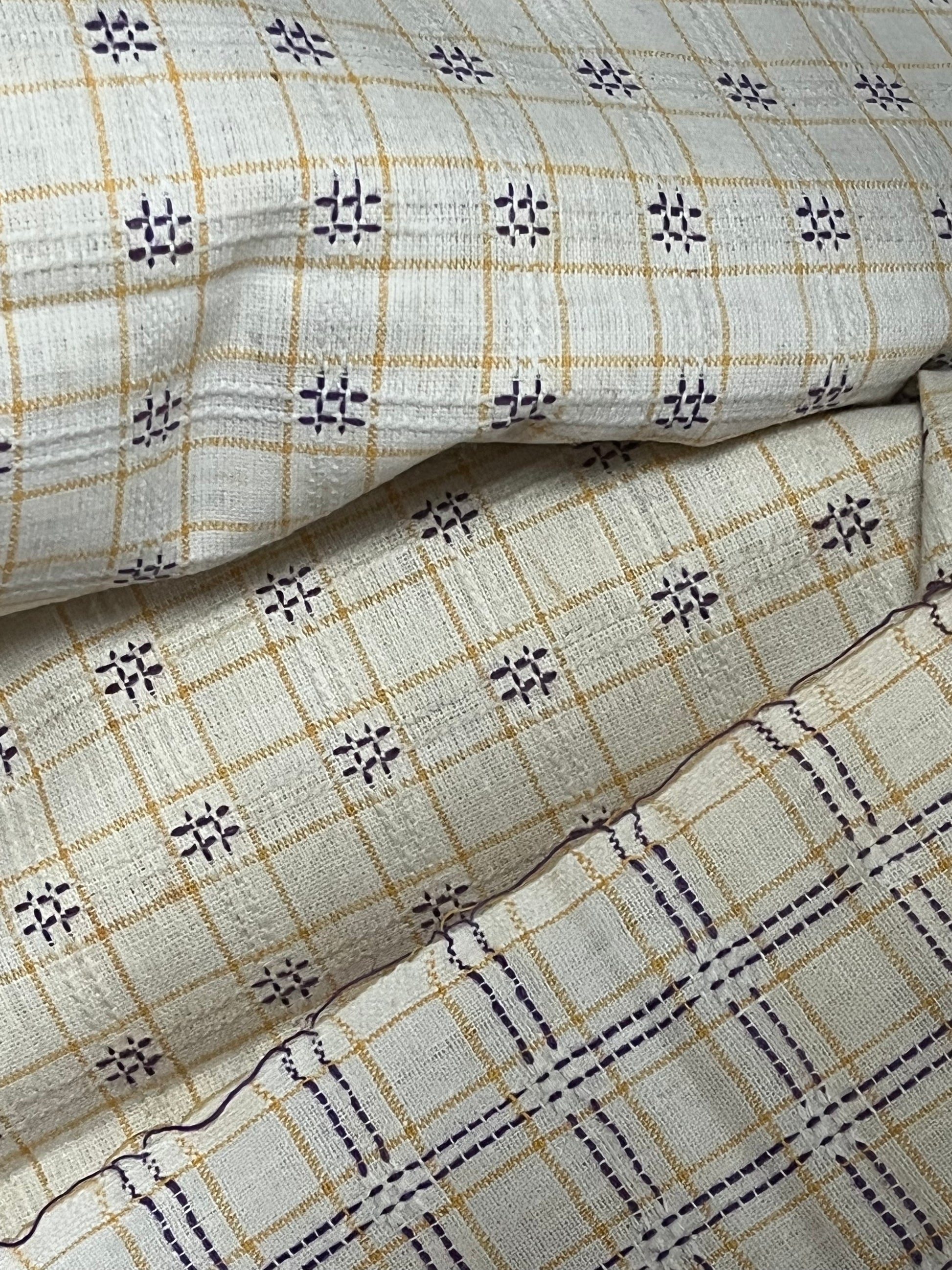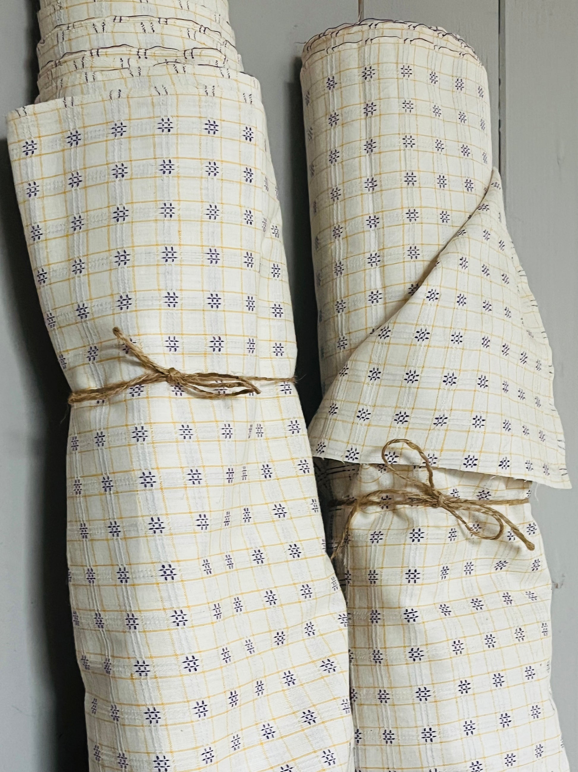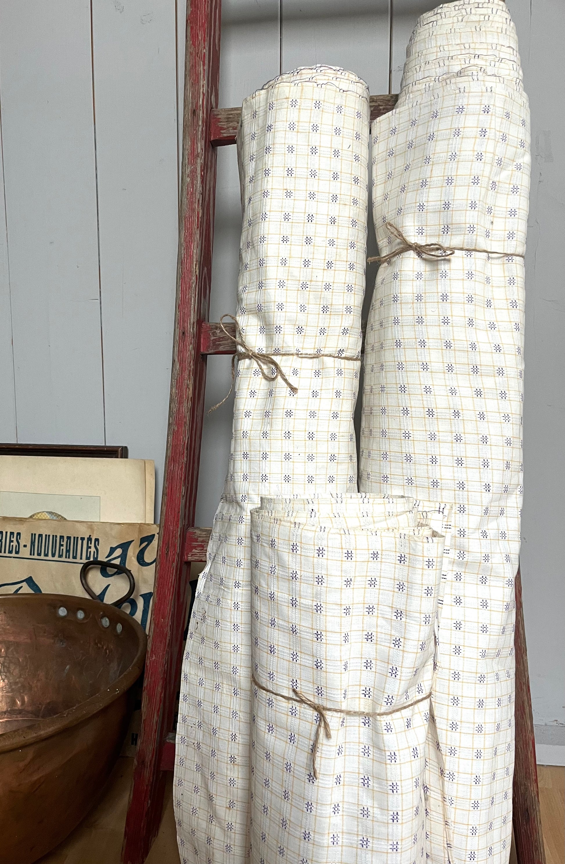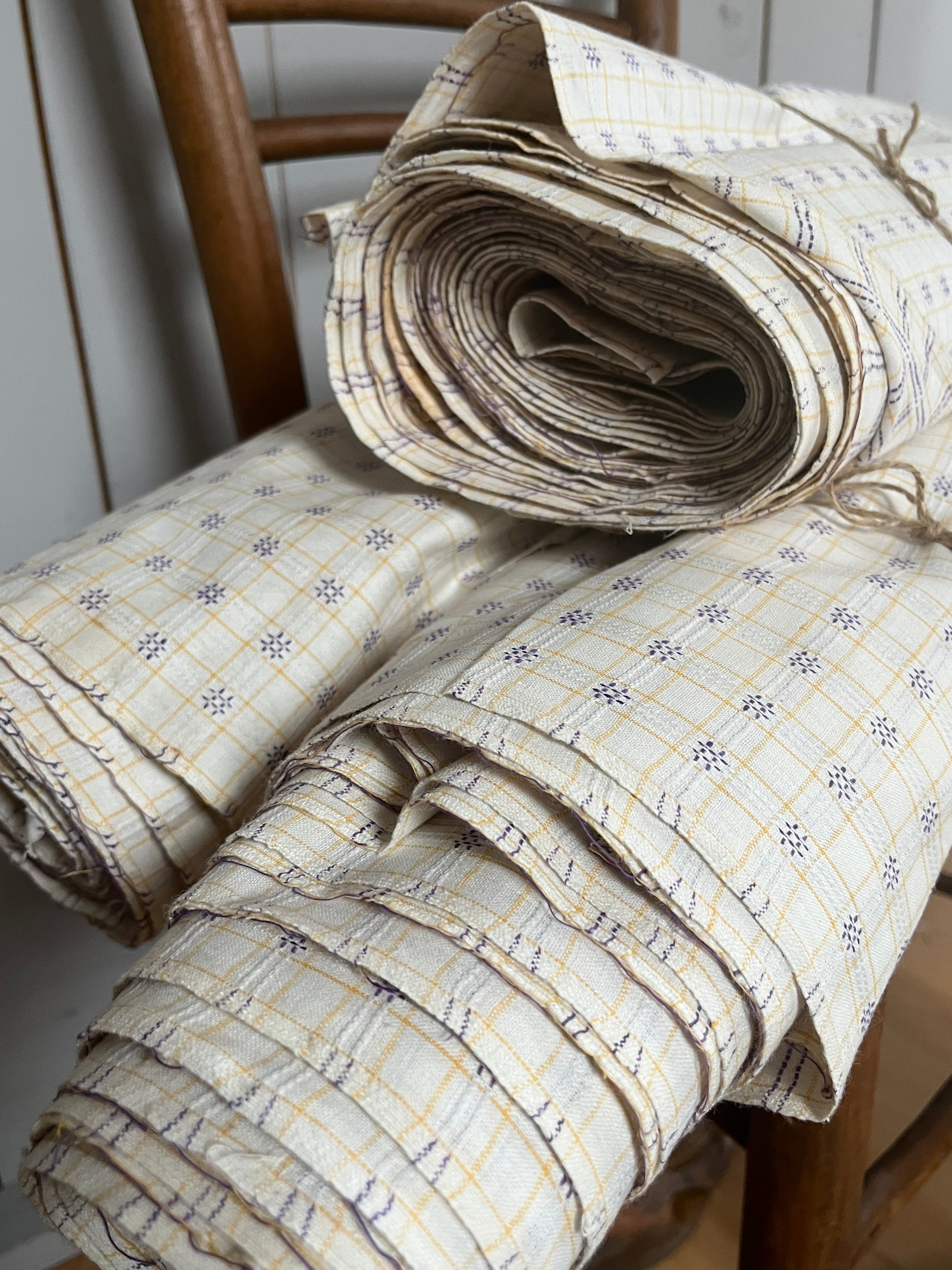 Wunderschöner Stoff aus den 1930er Jahren. Es ist zartes Leinen, Vorder und Rückseite zeigen ein unterschiedliches Muster. Es ist eingewebt, filigran und vermutlich für Bettwäsche gedacht. Die 4 m liegen 1,6 m breit. Damit kann man schon wunderbar arbeiten. Es gibt zwei Ballen in dieser Größe. Sie werden separat verkauft. Gewicht etwa ein Kilo. Der Stoff ist toll erhalten, es gibt minimale Lagerspuren, er sollte einmal gewaschen werden.