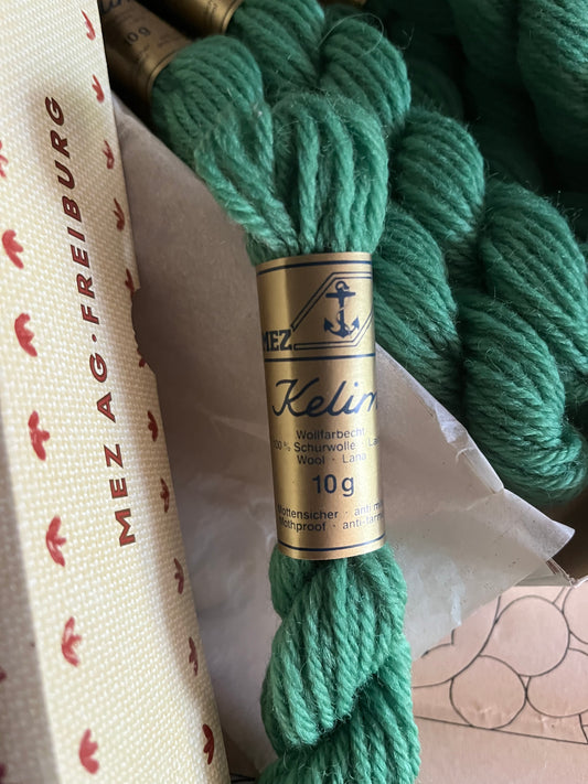 Mez original Karton mit 10 Strängen Teppich Stickgarn Kelim Sanftes Grün