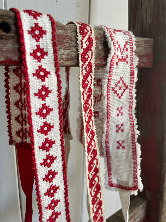 Promotion3 alte Wäschebänder handbestickt um 1910