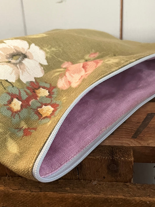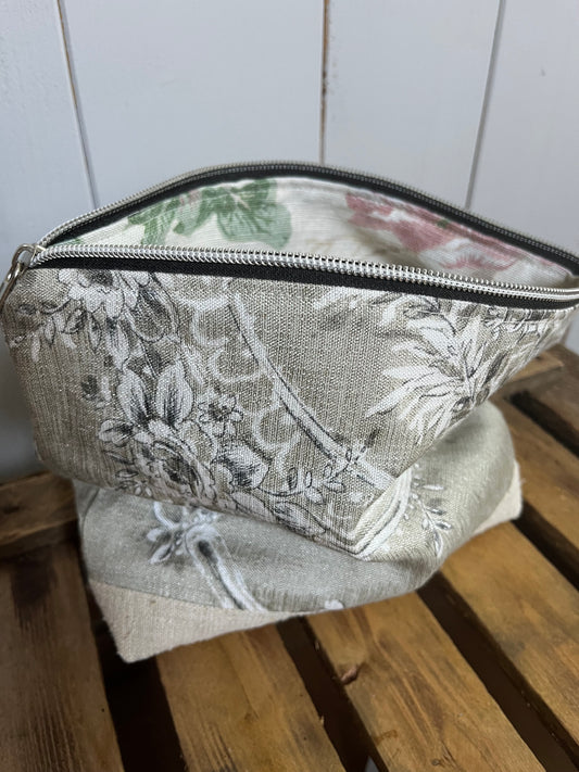 Kosmetiktasche aus Leinen Blüten, kleiner Shopper
