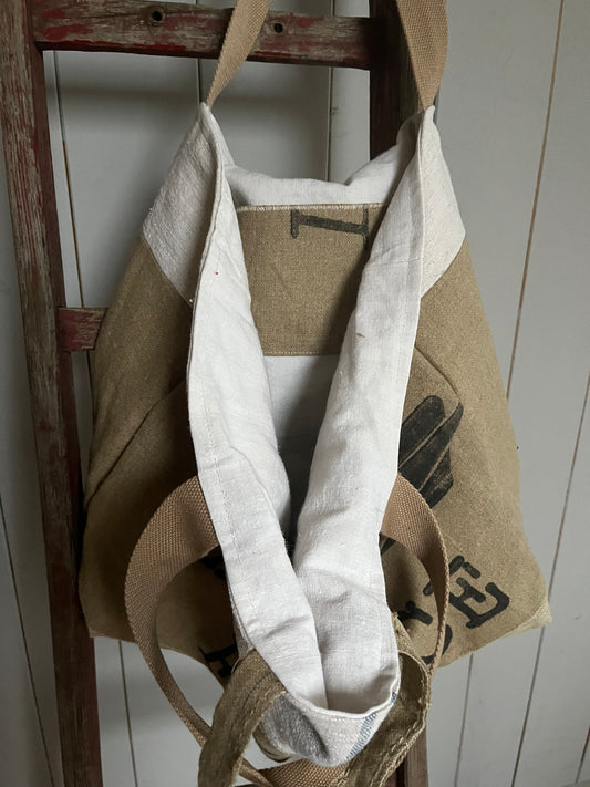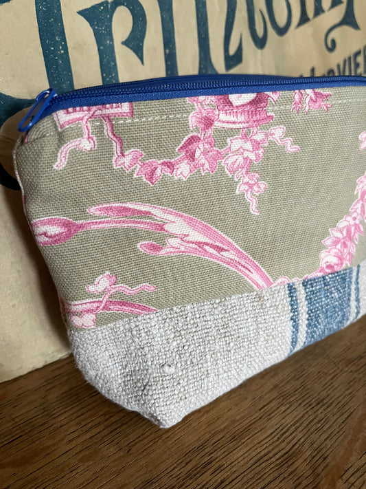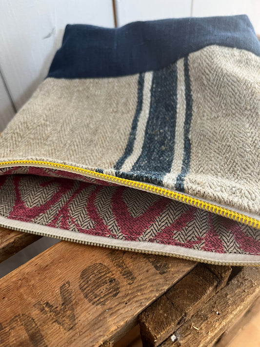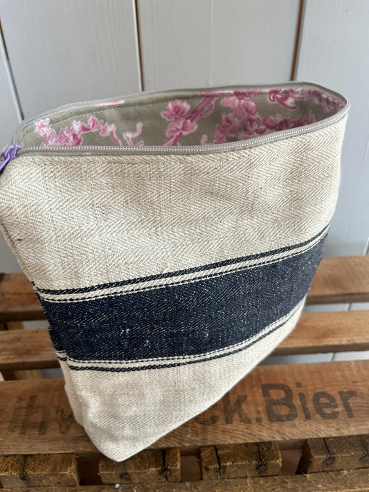 Kosmetiktasche aus altem Leinen gestreift kleiner Shopper