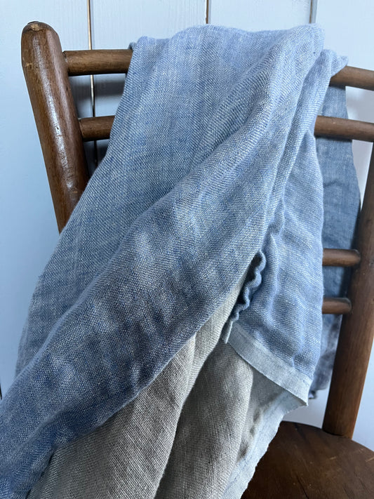 Kuscheldecke Decke aus washed Leinen - eine Seite Hellblau, eine Natur