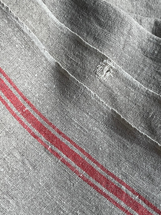 Mangeltuch aus sehr altem Leinen mit roten Streifen 2,8 x 0,78