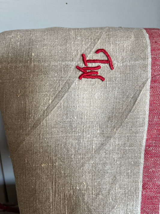 Leinenkissen aus Frankreich mit Monogramm und Hohlsaum