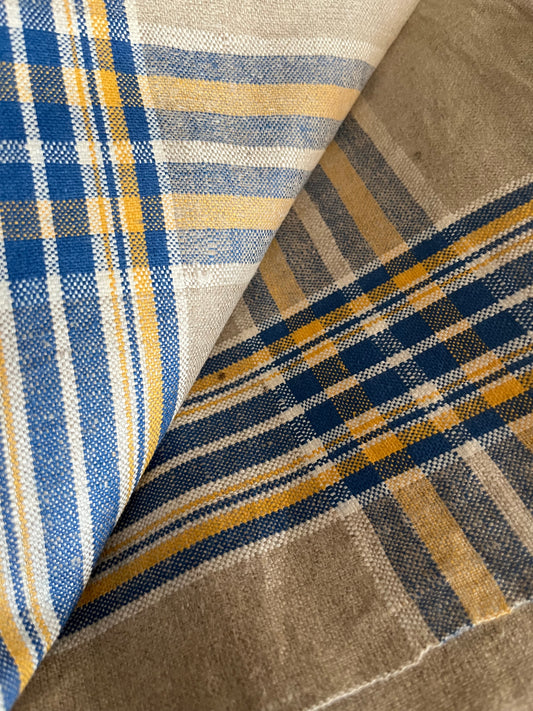 Mangeltuch aus altem Leinen mit blau/gelben Streifen 2,8 x 0,78