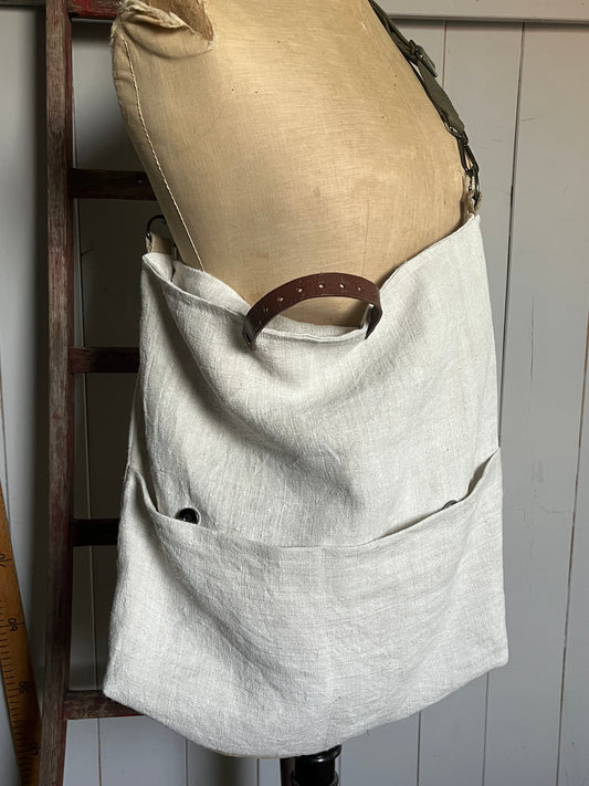 Pur: große Tasche aus altem Bauernleinen mit Extras
