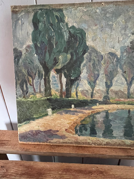 Parklandschaft in Öl - altes Bild aus Frankreich