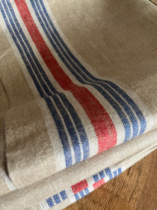Seltenes Mangeltuch mit blau/rot/weissen Streifen 200 x 90