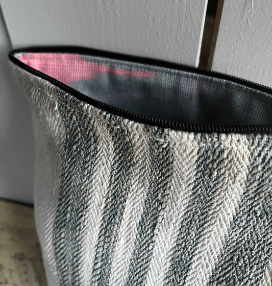 Striped: Kosmetiktasche Tasche aus altem Leinen mit Innenfutter kleiner Shopper