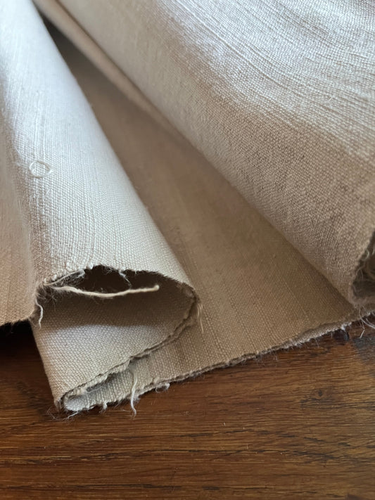 Seltenheit: absolut sauberes 4,5 Meter 100-jähriges Bauernleinen Greige
