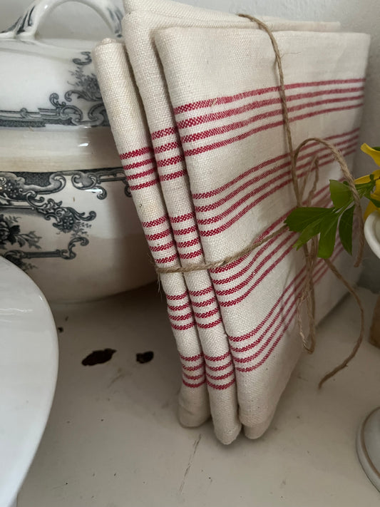 Trio: französische große Tücher Rot/Weiß Halbleinen