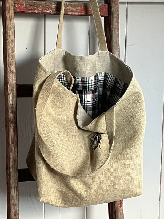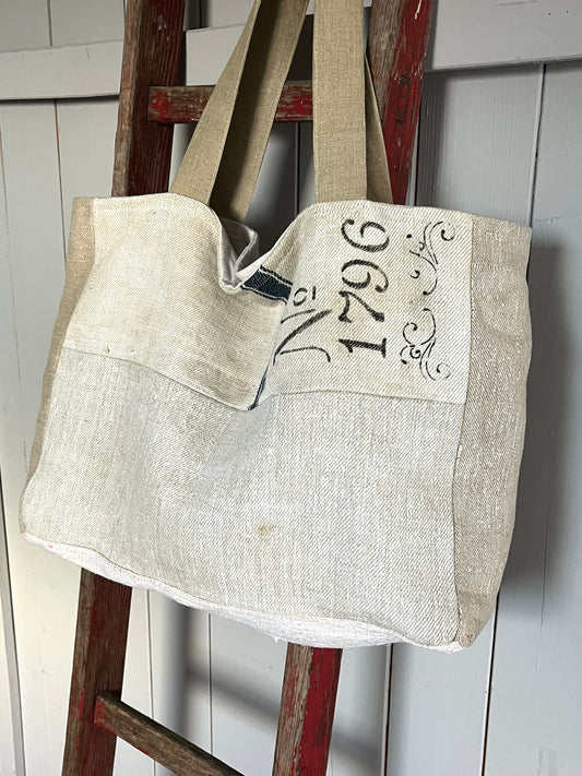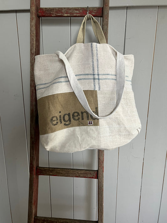 Very Vintage: Große Tasche Shopper mit Aufschrift aus Kornsack