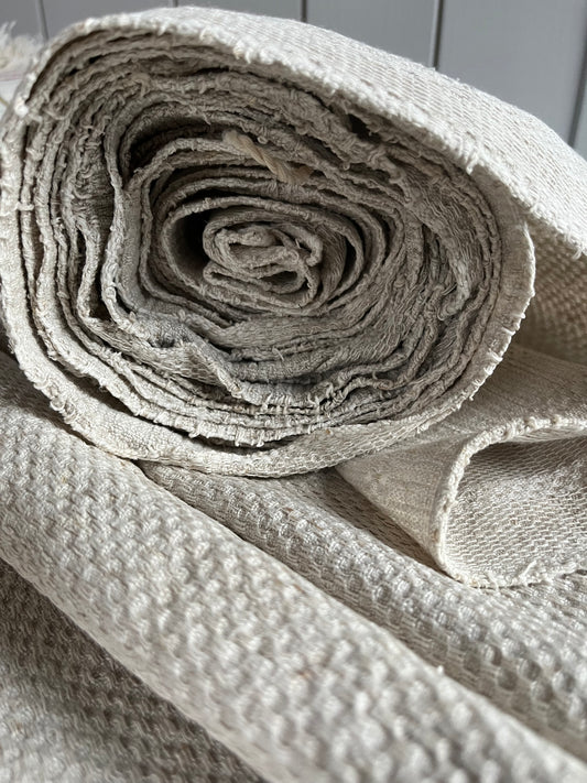 3,5 Meter altes handgewebtes Handtuchleinen mit Wabenmuster