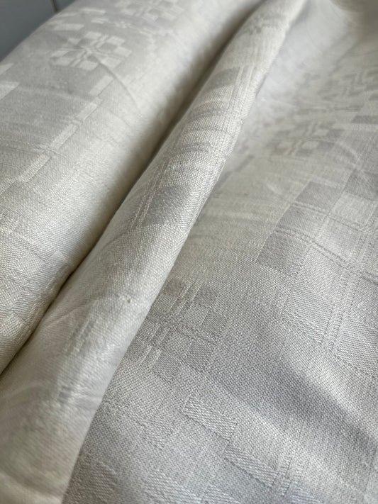 4 Meter altes Handtuchleinen mit eingewebtem Muster - sauber