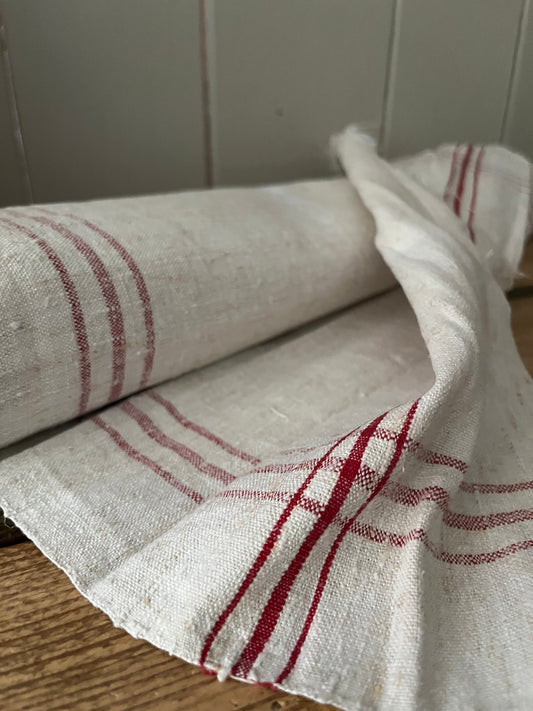 3,5 Meter sehr altes Bauernleinen mit roten Streifen