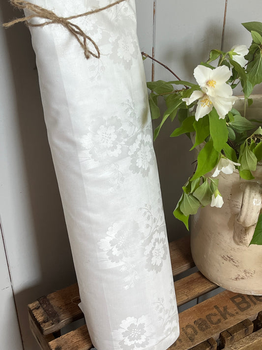 Damast-Beauty: 8,4 Meter bildschöner Leinendamast mit Blüten um 1940 - 1,8 Kilo schwer