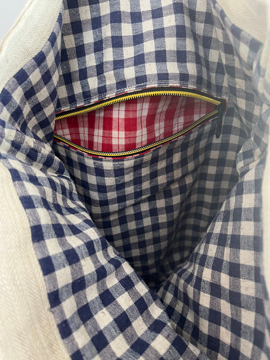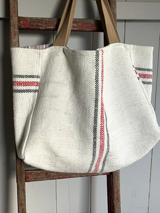 Drei Farben: große Tasche aus altem Leinensack