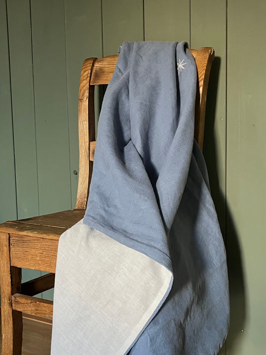 Decke aus washed Leinen - eine Seite Bleu, eine Weiß