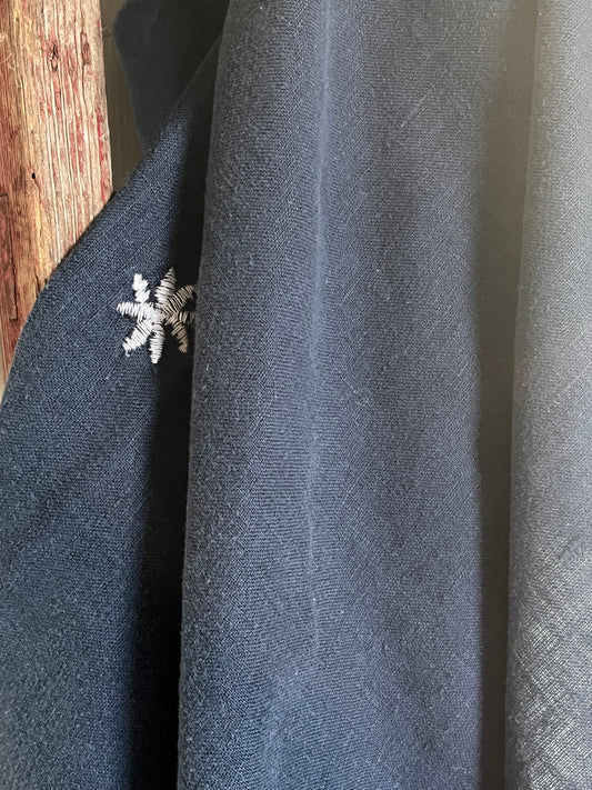 Decke aus washed Leinen - eine Seite Dunkelblau, eine Weiß