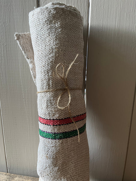5,75 Meter fantastisches handgewebtes Leinen mit roten Streifen