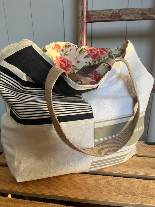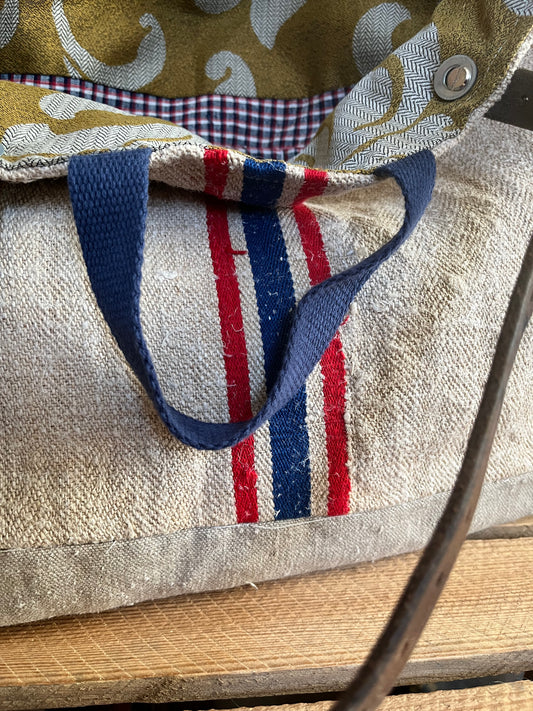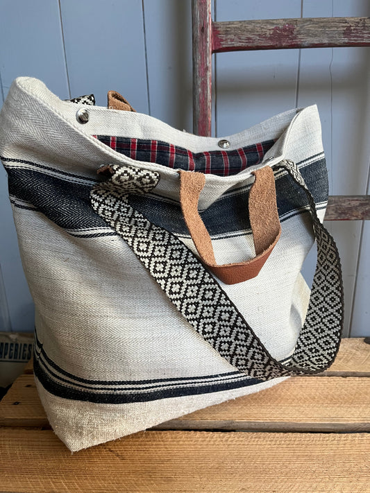 Stripes: große Tasche aus kräftigem altem Leinensack