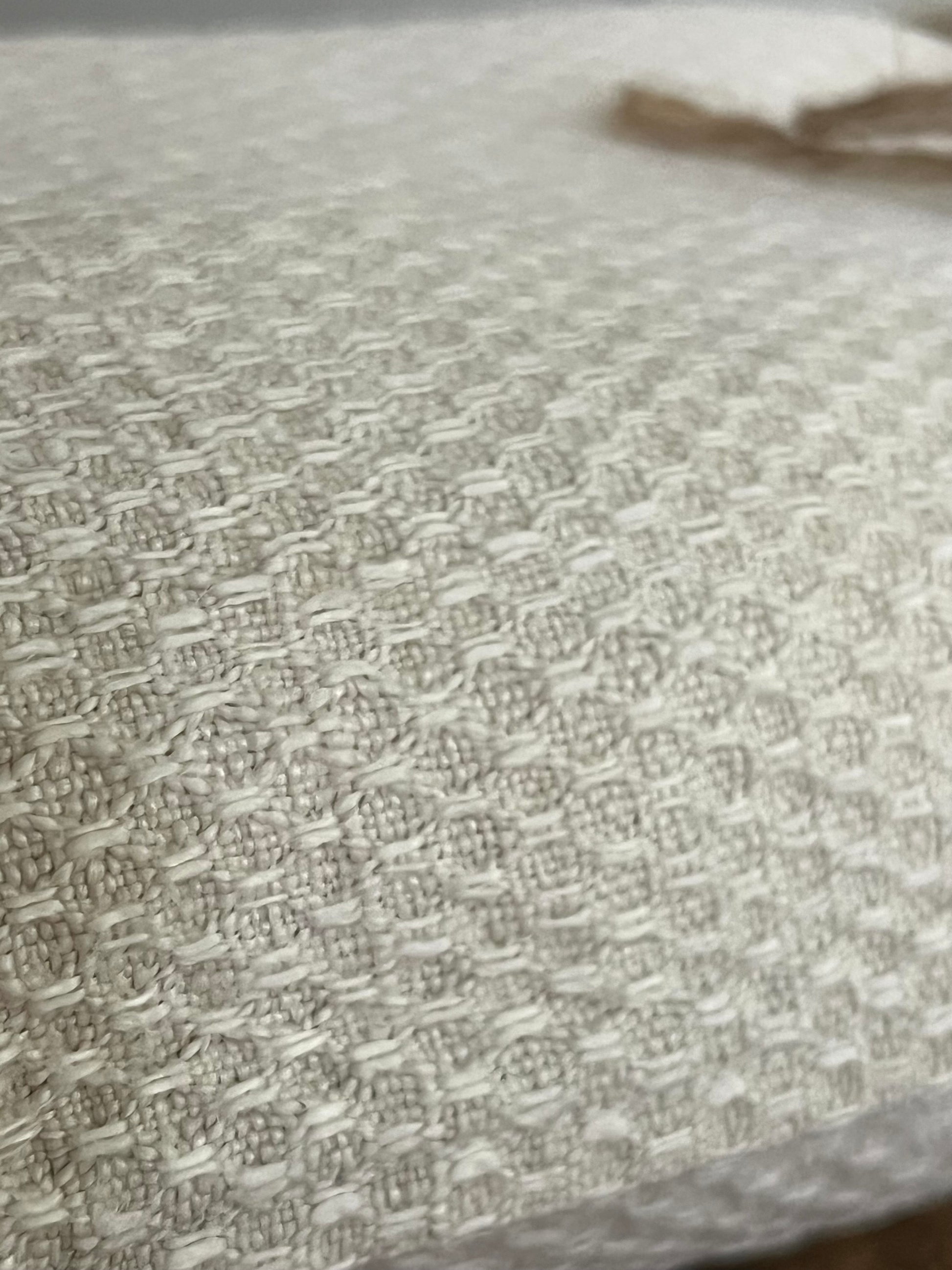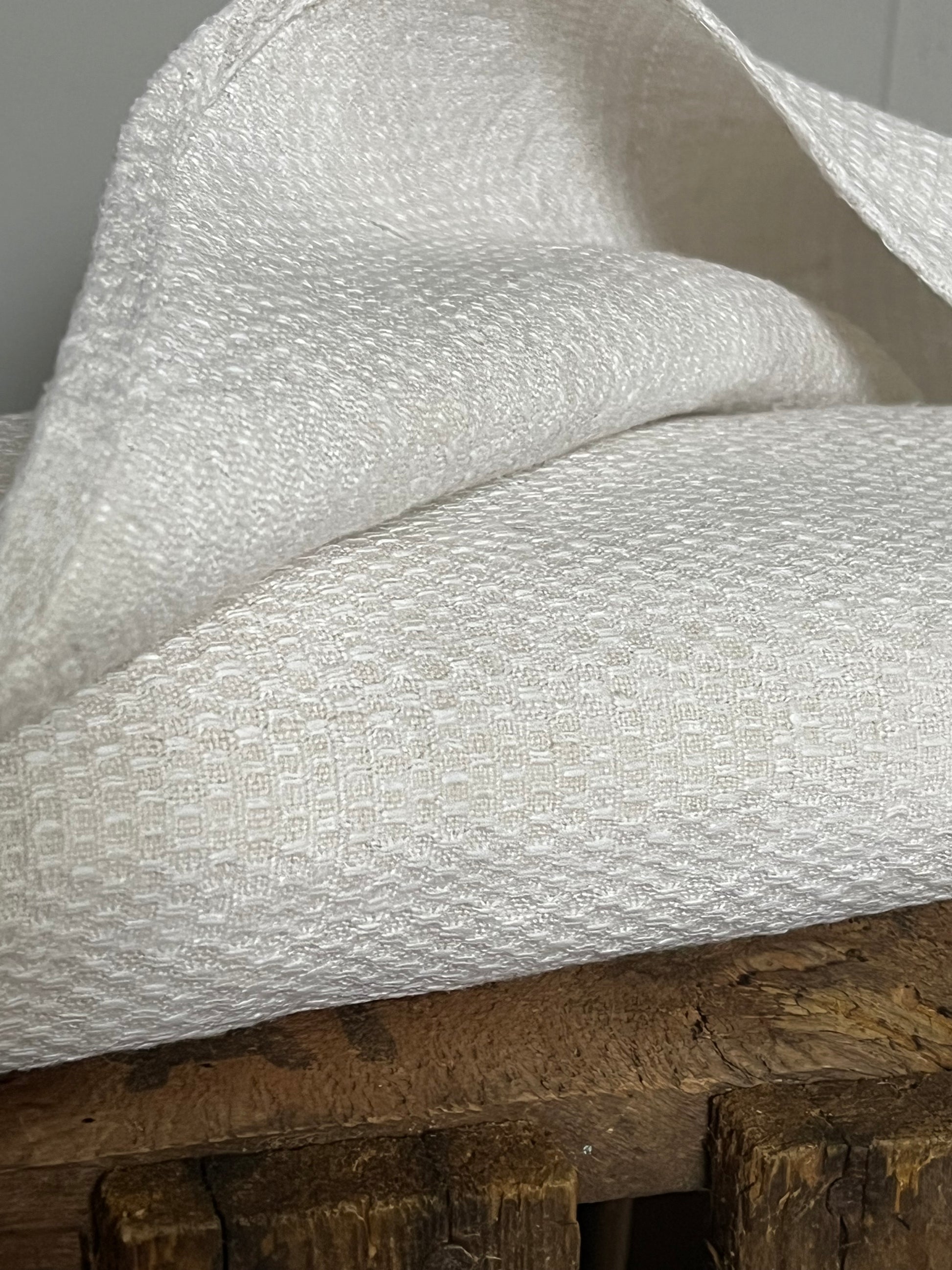 Aus diesem wunderbaren Leinen wurden früher Küchentücher genäht. Es hat eine Struktur, die an heutiges Waffelpiquee erinnert. Es sind sogenannte Gänseaugen, dadurch ist das Leinen noch mal saugfähiger. Maße: 3,15 m x 0,7 m. Der Stoff ist wunderbar erhalten, unbenutzt und hat ein ordentliches Gewicht. Die 3 m wiegen bereits 0,8 Kilo.